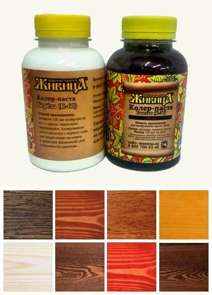 Добавить колер в масло для придания тому тонирующих свойств. Перед нанесением колерованного масла тщательно перемешать, подняв нерастворимый осадок со дна ёмкости.